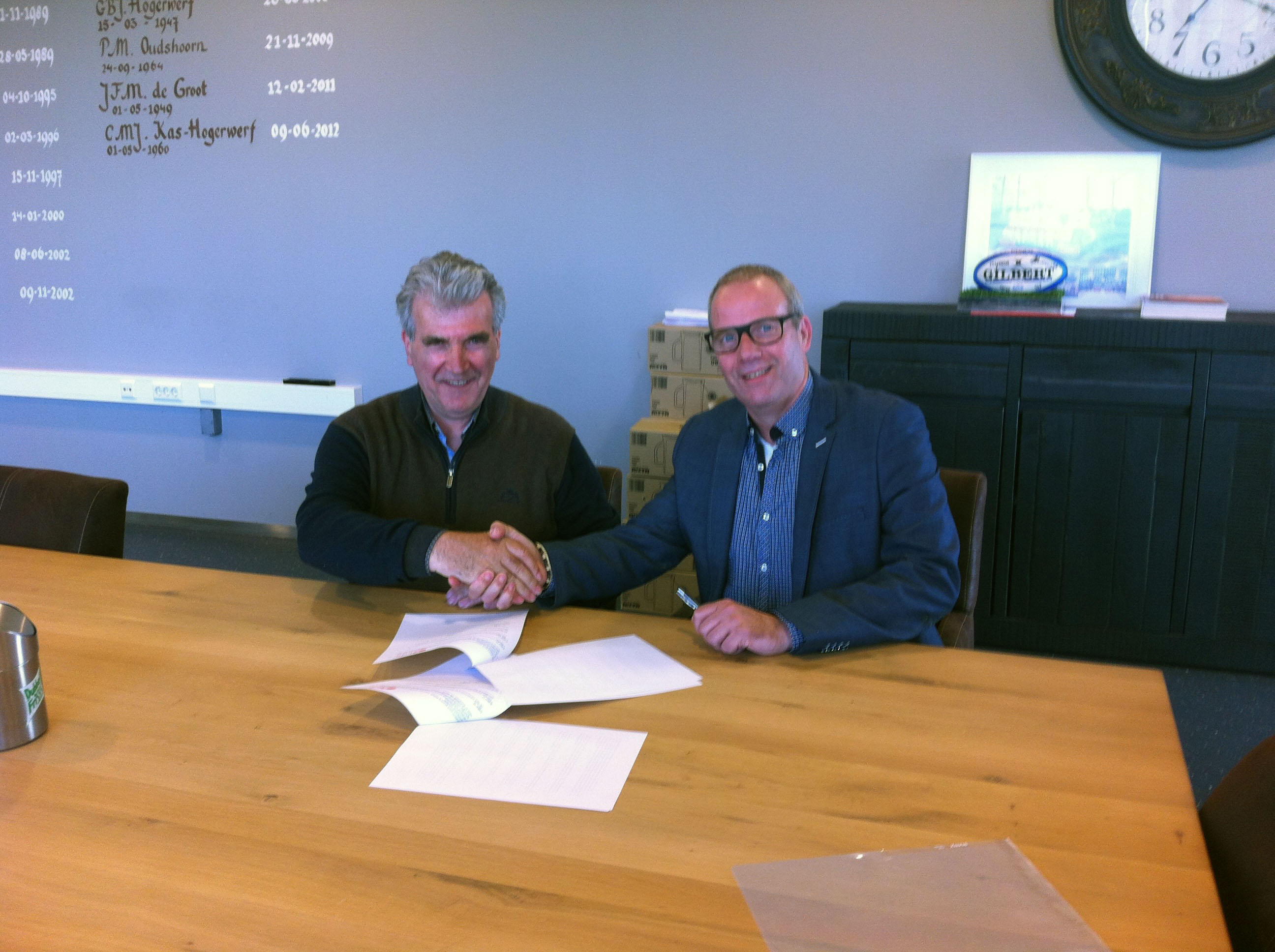 Op foto: Henk Blom tekent het sponsorcontract